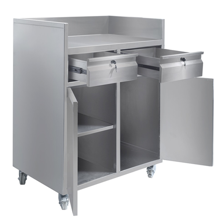 - Full piano hinged double skin doors for storage with mid shelf to left hand side