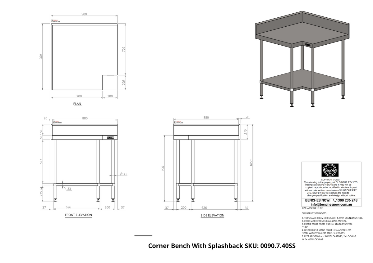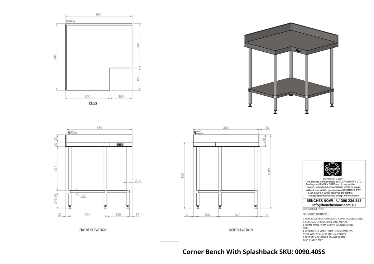 - 100mm splashback (600 deep) or 150mm splashback with beveled edge (700 deep) with vermin proofing system for added protection