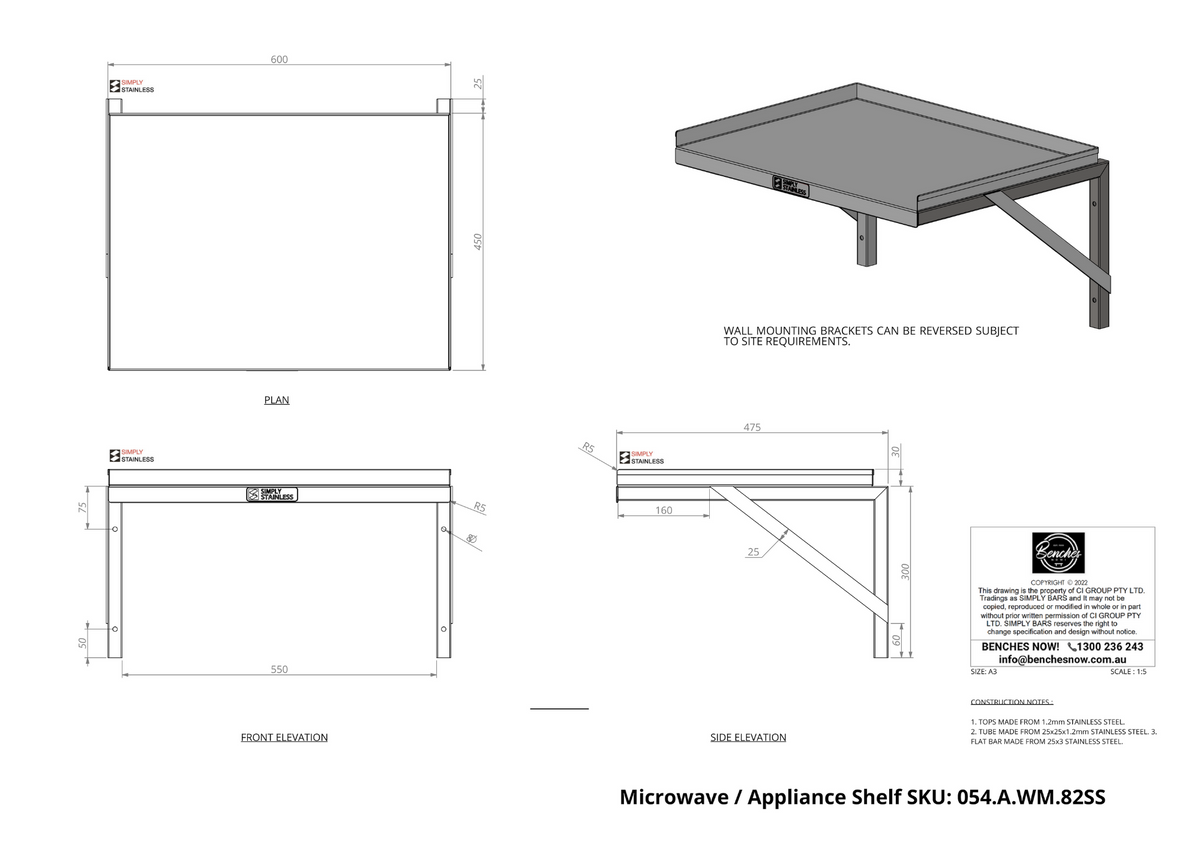 - Wall mounted microwave or product shelf