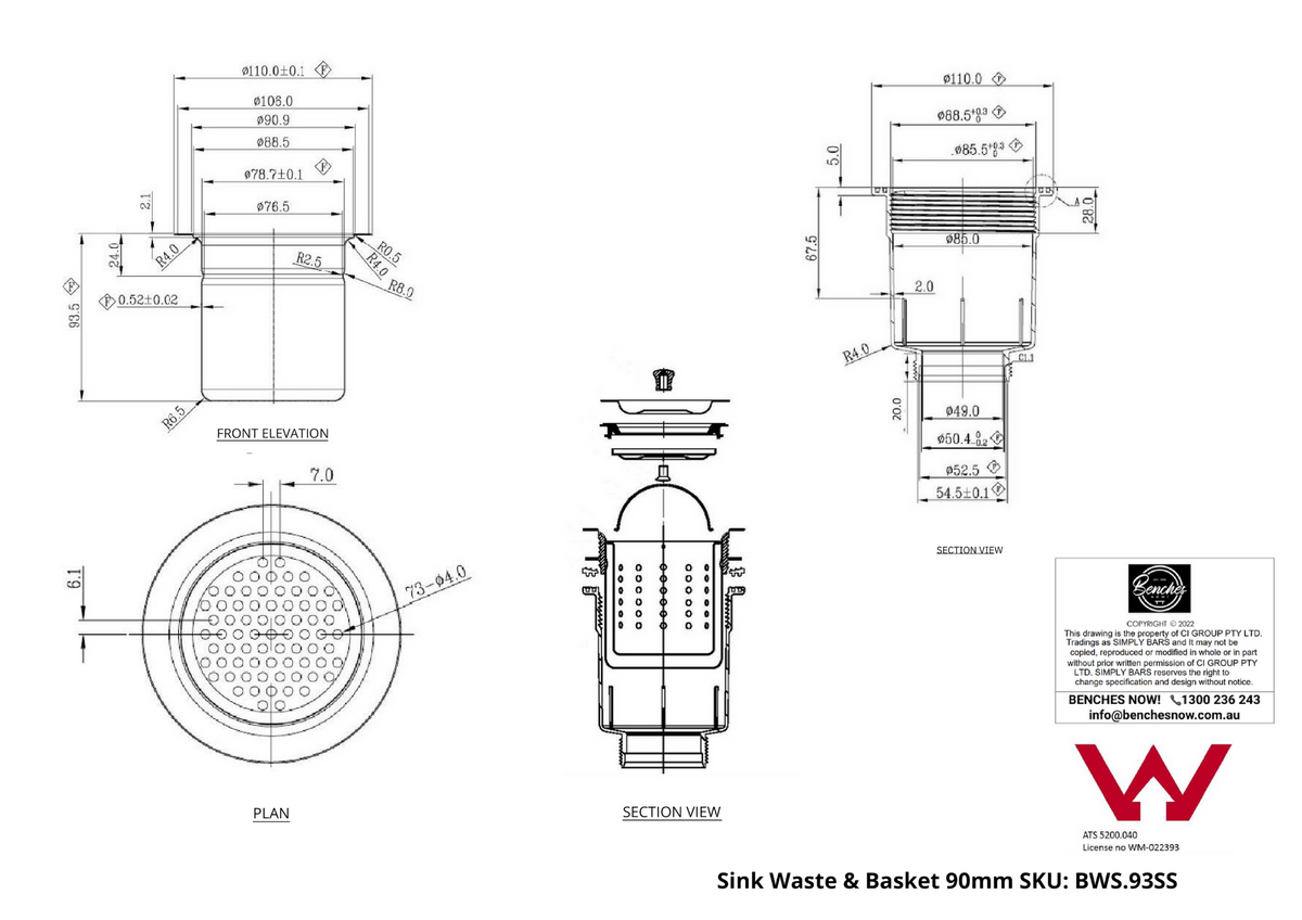Sink Waste & Basket 90mm